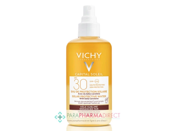 Aussi fraîche qu’une eau, aussi protectrice qu’un lait, Vichy Capital Soleil SPF30 Eau de Protection Solaire Hâle Sublimé procure une sensation de plaisir à chaque application tout en garantissant une haute protection solaire.